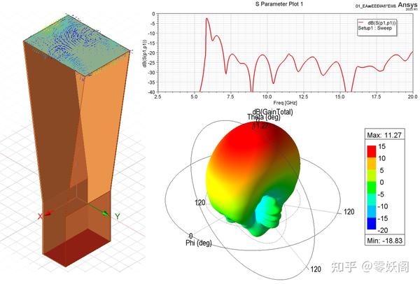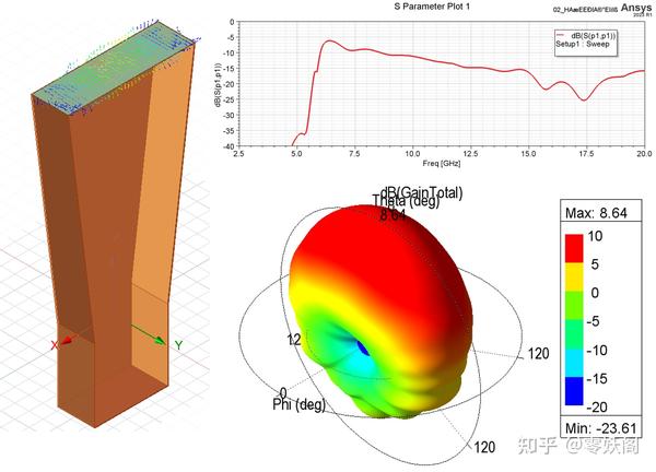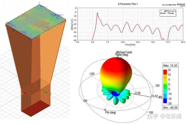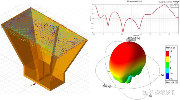 下圖給出了角錐雙脊喇叭天線的仿真結(jié)果。
