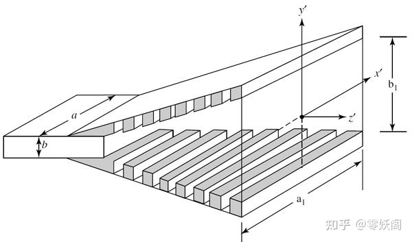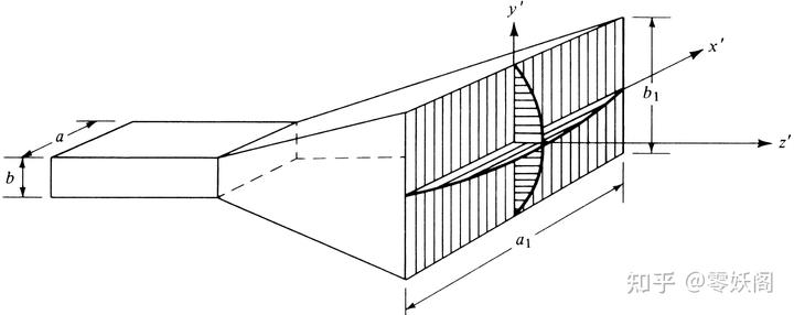 E 面扇形喇叭天線是由矩形波導(dǎo)在電場(chǎng)方向上按照一定角度張開而成的。