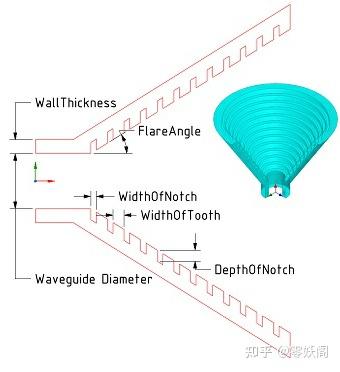 波紋喇叭天線是一種具有波紋狀內(nèi)表面的喇叭天線。它具有頻帶寬、交叉極化低、波束對(duì)稱性能好的優(yōu)點(diǎn),但其結(jié)構(gòu)復(fù)雜,加工難度和加工成本較大。