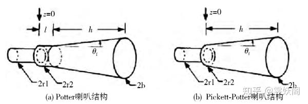 雙模圓錐喇叭的結(jié)構(gòu)實(shí)現(xiàn)形式不是唯一的,常見的實(shí)現(xiàn)方式有 Potter 喇叭和 Pickett-Potter 喇叭。